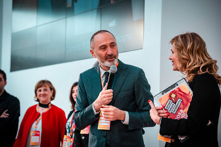 Valerio Veronesi, Presidente della Camera di Commercio di Bologna: “Ai ragazzi dico: raccontateci le vostre esigenze le vostre storie. Il cambiamento è in ogni aspetto della vita. Il cambiamento siete voi. L’aspetto più importante è la tenacia. Non basta l’ambizione, non basta il talento. Ce la farete nelle vostre imprese perché avete tenacia”