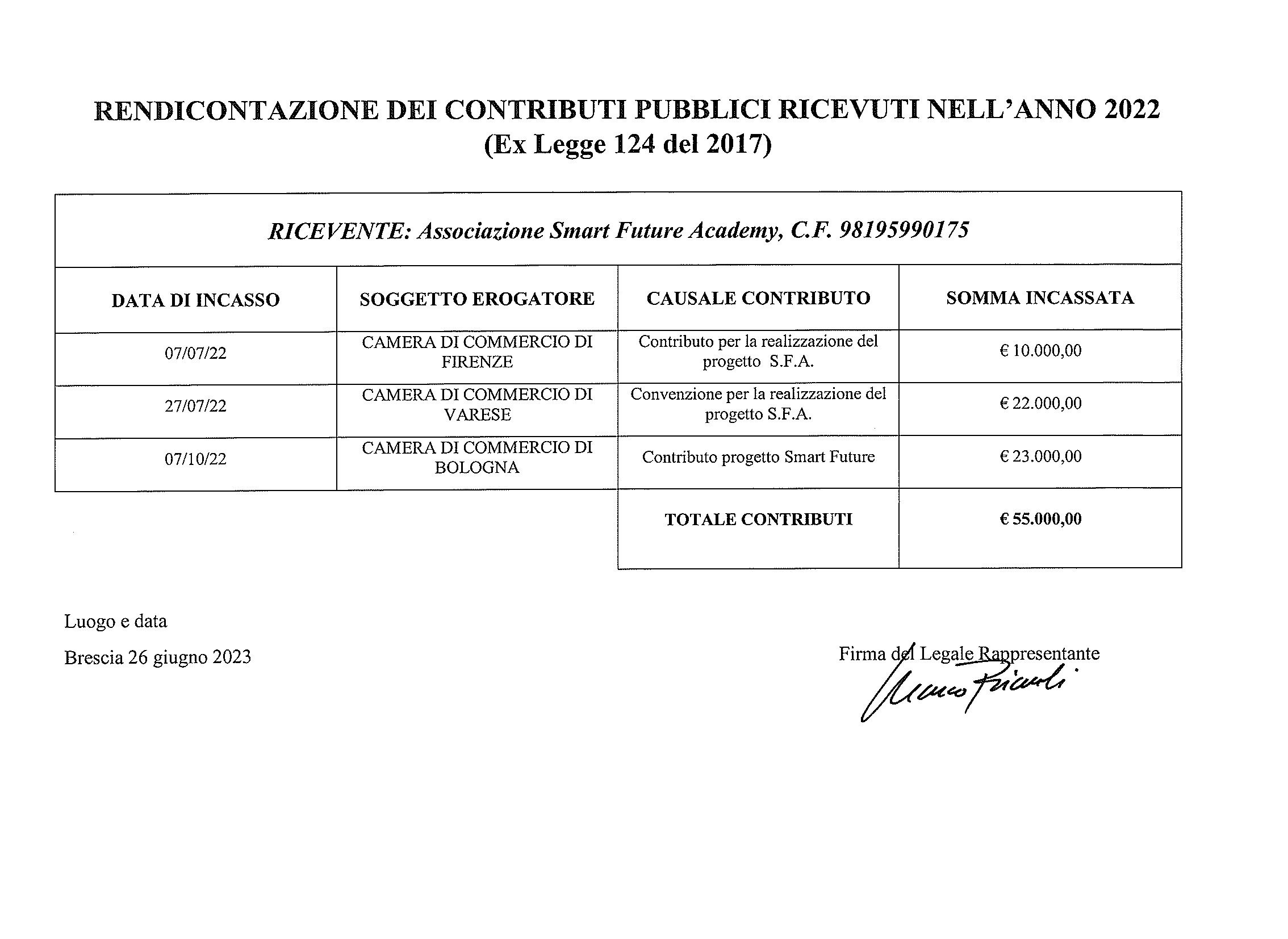 Smart Future Academy incoraggia gli imprenditori, le istituzioni e i sistemi di istruzione a investire consapevolmente nell’educazione dei giovani, nella convinzione che non esista miglior modo per garantire un futuro a loro ed al nostro Paese.
