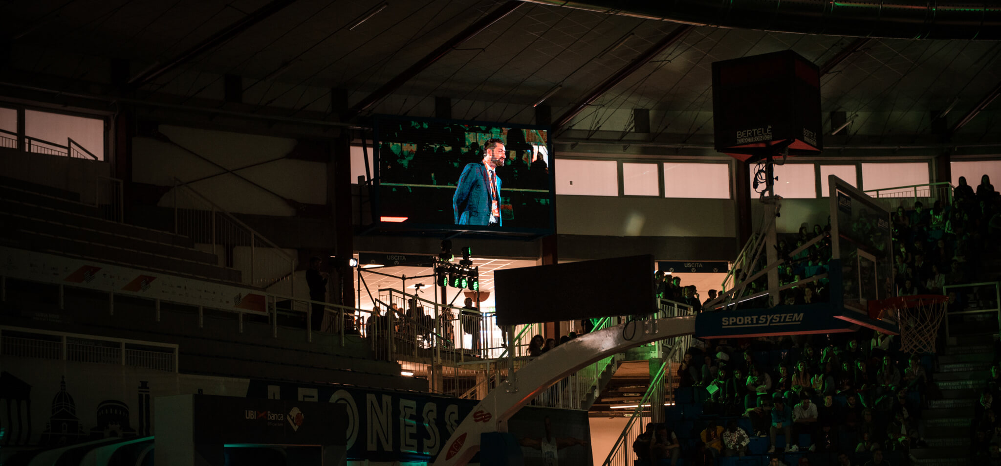 Lo spazio che ci ha ospitato (il PalaLeonessa) bastava da solo a catturare l’attenzione della platea: luci, colori, suoni, voci fuori campo…dosati in maniera perfetta!